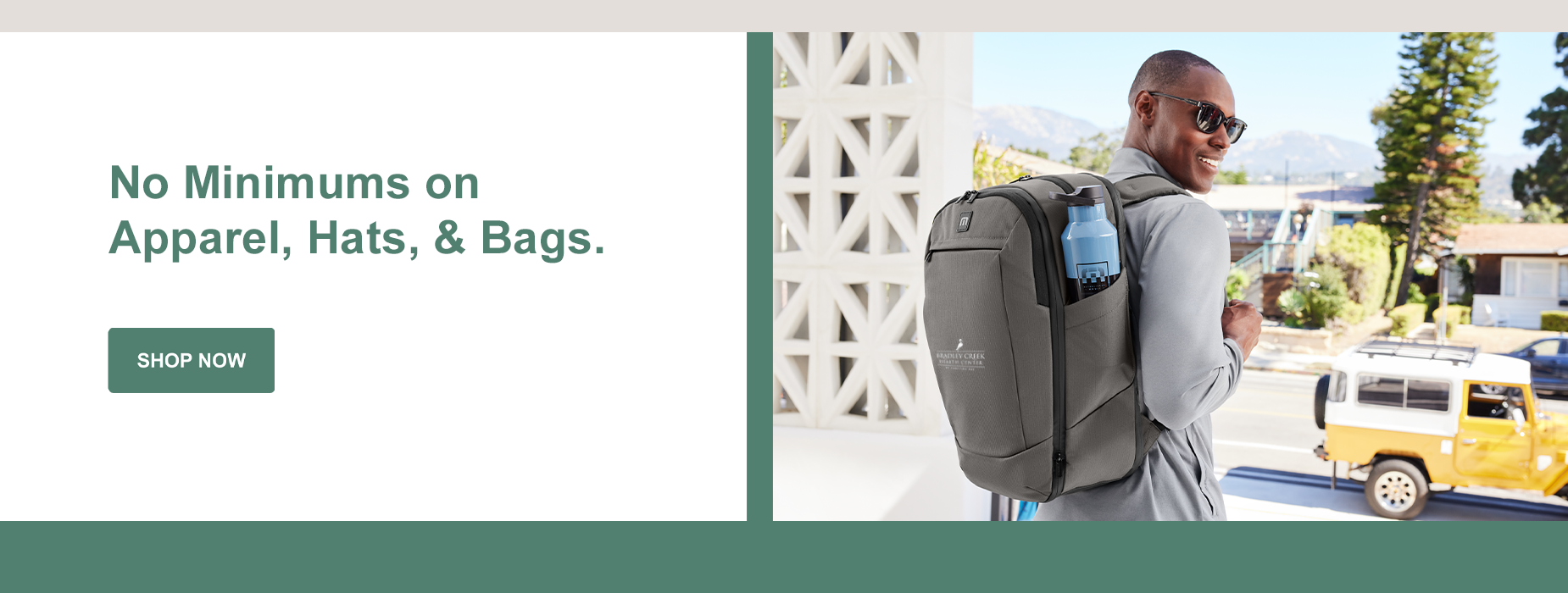 - We have a great selection of apparel, hats, and bags available in single quantities.