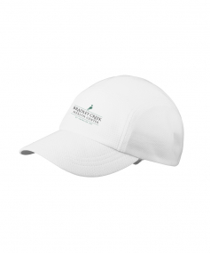 Sweat wicking, lightweight, breathable with 100% poly closed-hole mesh. Terry sweatband, 5 panel, unstructured, with low profile that stays secure as you run. Black under bill to prevent glare. Reflective O heat transfer on side panel and webbing with buckle closure.
