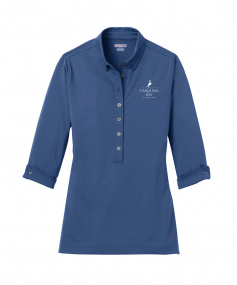 Break away from the ordinary in this button-down style polo that features cuffed 3/4 sleeves.